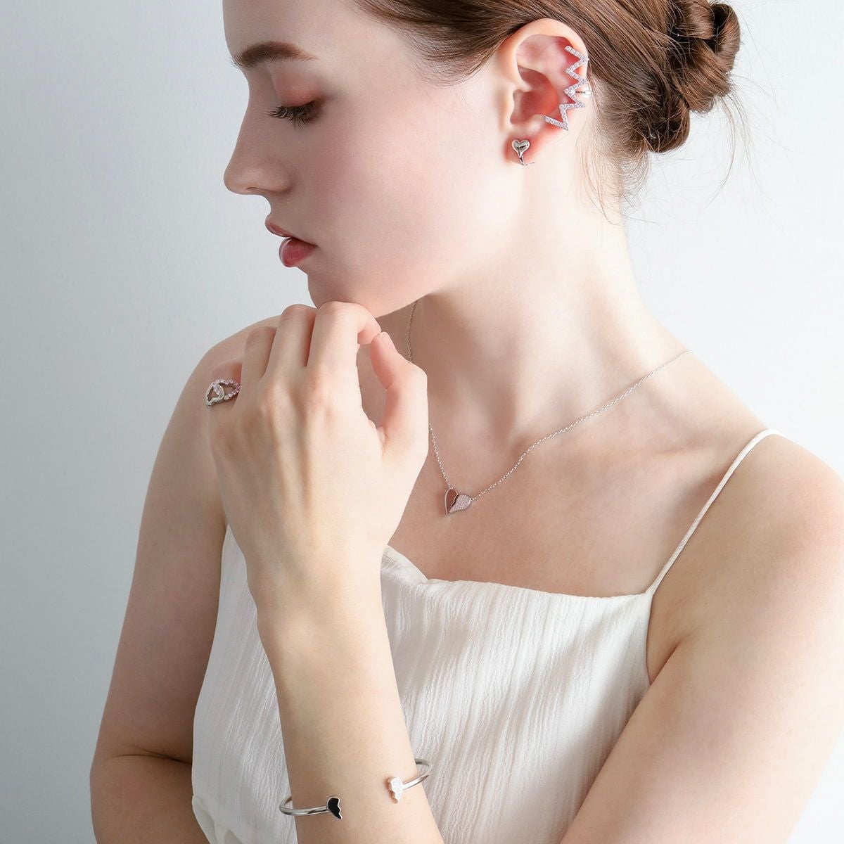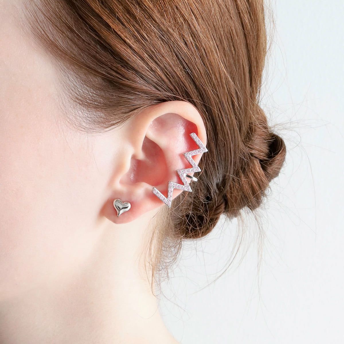 Jagged Heart Ear Clip Set Silver