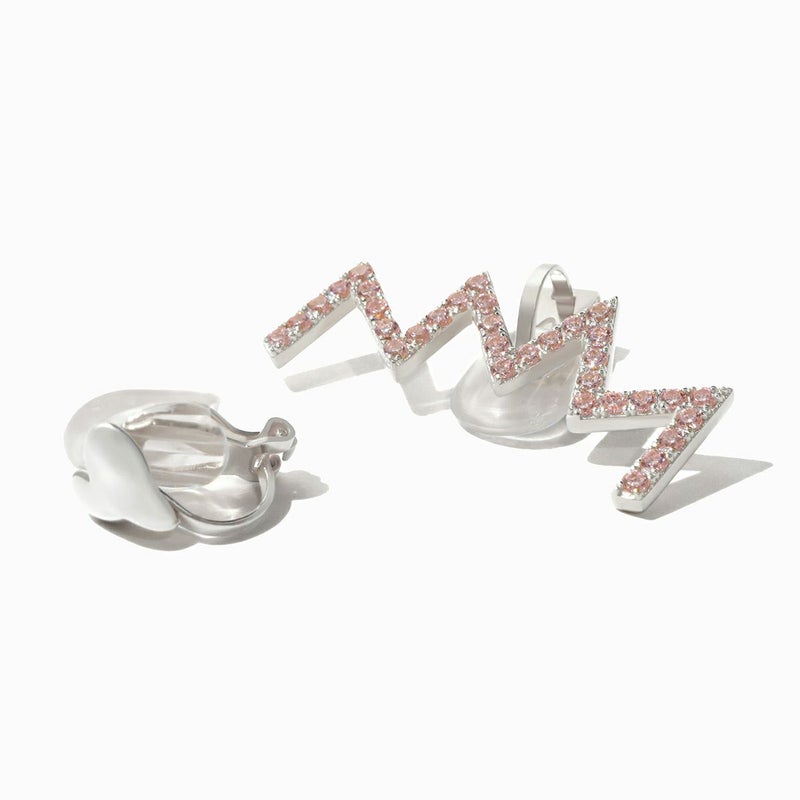 ギザギザのエッジ、ハートの温もり Jagged Heart Ear Clip Set Silver