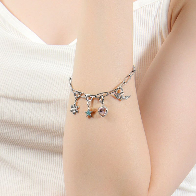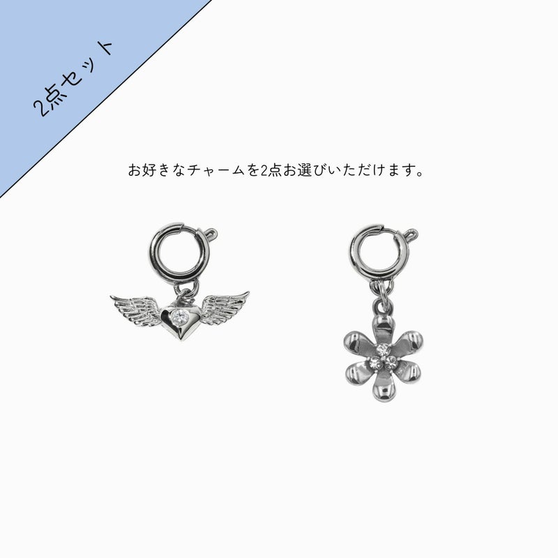 チャームを重ね付けして華やかに、その日の気分やシーンにあわせて単品で付け替えたり…お好みでお楽しみください。