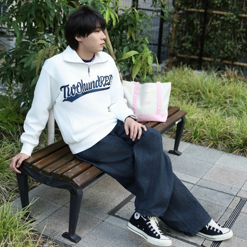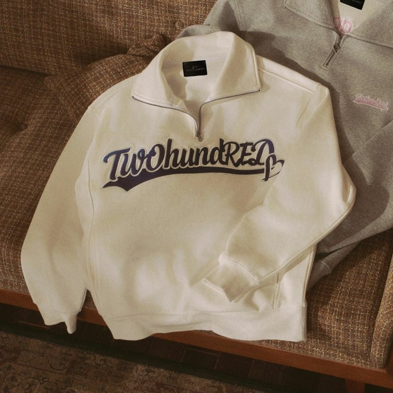 フロントには、青文字で「TwO hundRED」をデザインで施し、バックにはこっそりとTwO hundREDの「2♡♡」のロゴを刺繍。